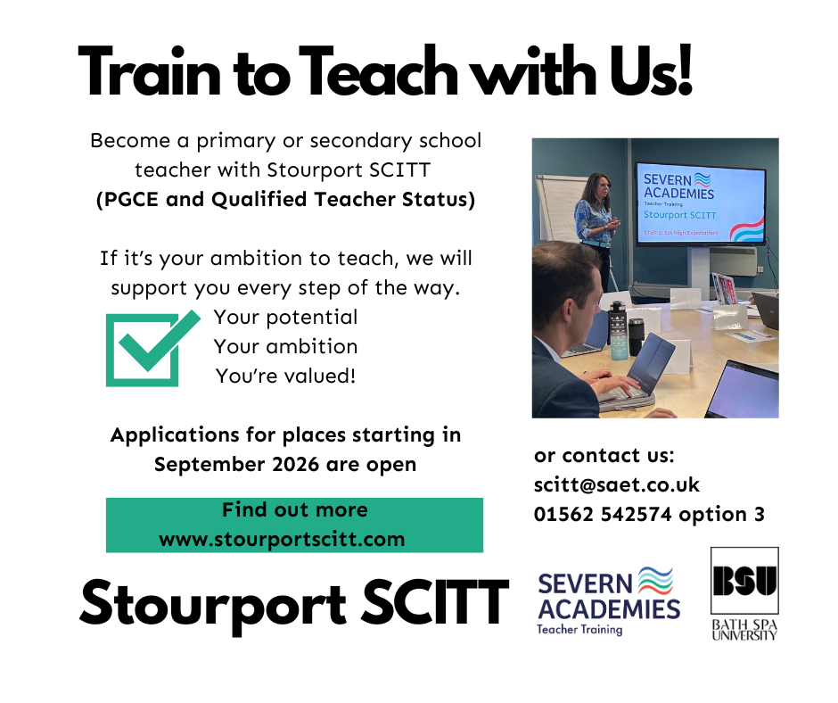 Working in partnership with Stourport SCITT; Worcestershire’s longest established School Centred Initial Teacher Training provider.Amazing Partner Schools